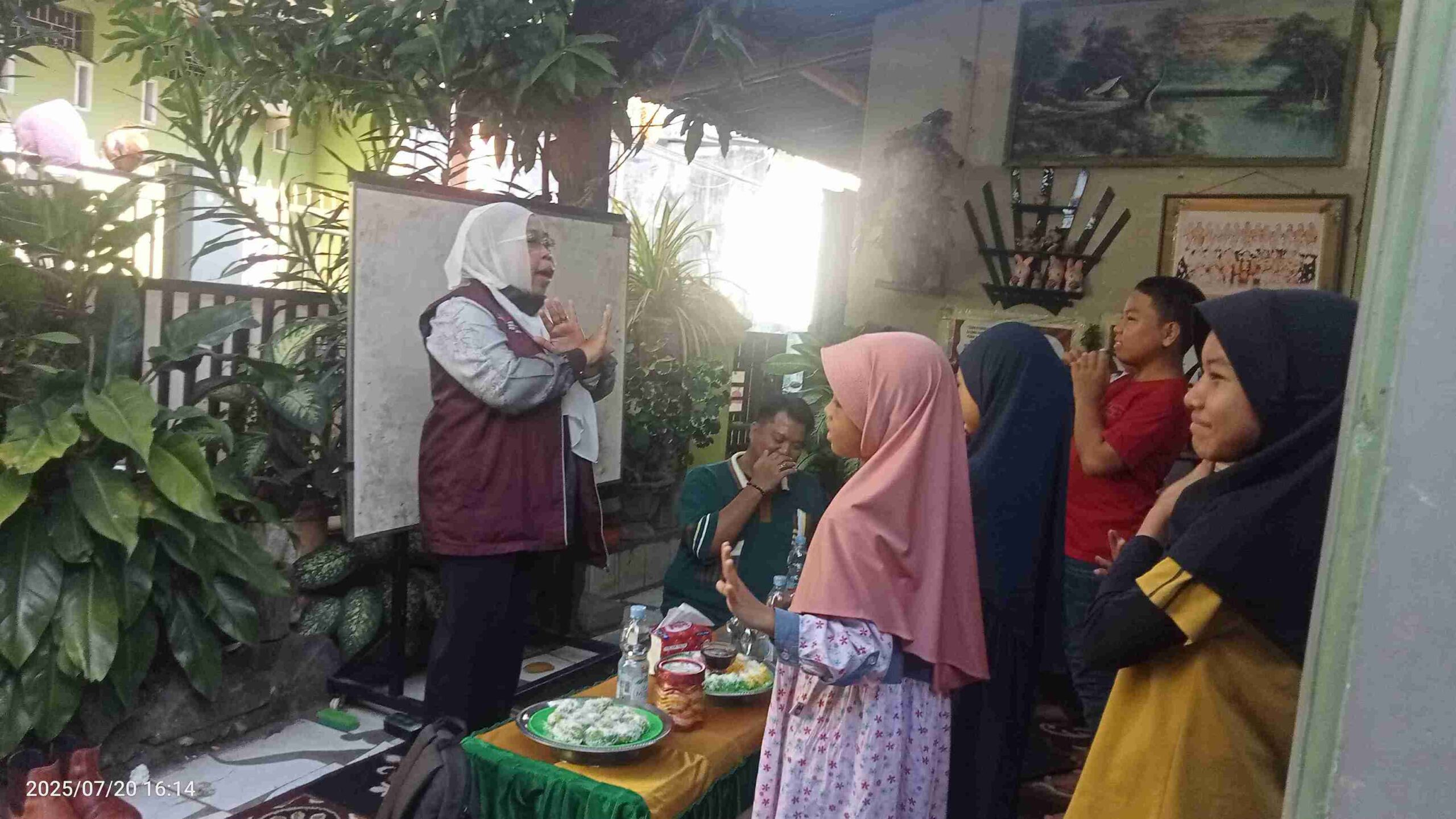 Dengan penuh semangat, Nursiah membawakan materi dasar Bahasa Inggris menggunakan pendekatan komunikatif dan bermain peran. Metode ini membuat anak-anak begitu antusias dan berani mencoba berbicara dalam bahasa asing tersebut.